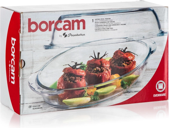 Praktický oválný pekáč ze žáruvzdorného borosilikátového skla s objemem 4 l (mísa 2,2 l + víko 1,8 l) pro pečení, zapékání i servírování. Odolá teplotám -50 až 500 °C, je hygienický, neporézní, snadno se čistí a lze jej mýt v myčce.