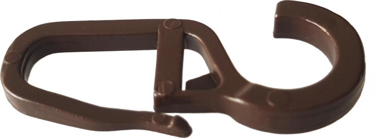 Velký háček na záclony je spolehlivým pomocníkem pro uchycení záclon v domácnosti i kanceláři. Hnědá barva ladí s přírodními i tmavšími garnýžemi a decentně splývá s interiérem. Díky pevnému plastu je háček lehký, ale zároveň dostatečně odolný pro každodenní používání.