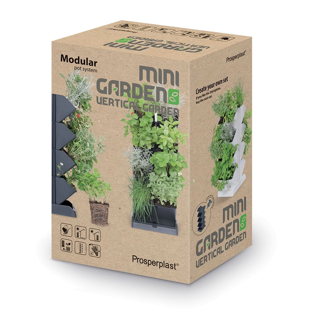 Proměňte balkon, kuchyň nebo parapet v zelenou oázu. Modulární vertikální květináče MINI GARDEN umožňují pěstovat více rostlin na minimální ploše, zatímco antracitový odstín ladí s moderním interiérem i exteriérem. Díky přiloženým nůžkám na bylinky máte čerstvou sklizeň vždy po ruce.