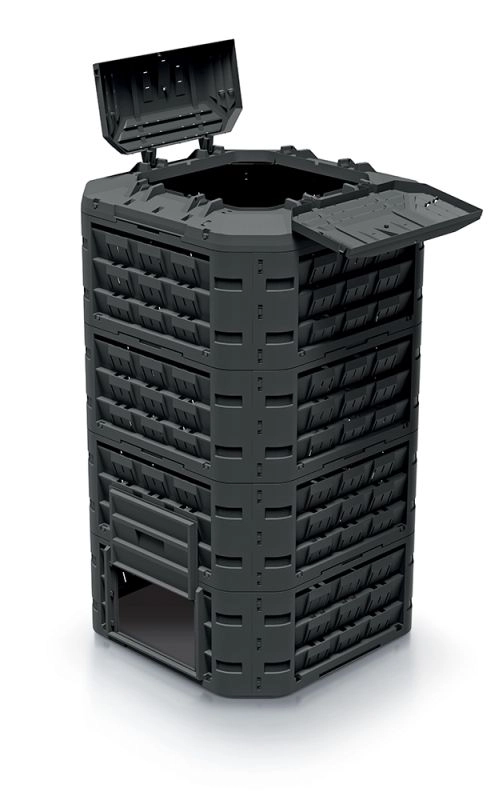 Robustní zahradní kompostér o objemu 1250 l pro efektivní zpracování zahradního a kuchyňského bioodpadu. Díky odolné plastové konstrukci, propracovanému odvětrávání a spodním dvířkům pro snadný odběr kompostu získáte kvalitní humus rychle a bez námahy. Ideální pro větší zahrady a celoroční kompostování.