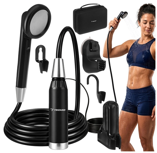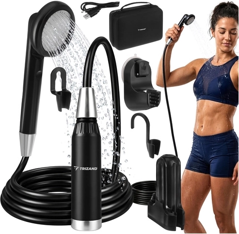Prenosná sprcha TRIZAND je praktické řešení pro každého, kdo chce mít pohodlné mytí i mimo domov. Výkonné ponorné čerpadlo zajistí stabilní proud vody, zatímco dobíjecí akumulátor umožní nezávislé použití bez přístupu k síti. Díky kompaktnímu balení s pouzdrem ji snadno vezmete kamkoliv.