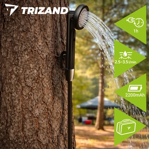 Užijte si čistotu a komfort kdekoliv – na kempu, na chatě i na cestách. Přenosná sprcha TRIZAND nabízí stálý průtok 3,5–4 l/min, bezdrátový provoz a baterii 2200 mAh až na 60 minut. Díky USB nabíjení, voděodolnosti IPX8/IPX4 a 1,8m hadici je ideální pro sprchování, oplach vybavení i domácích mazlíčků.