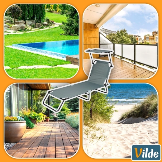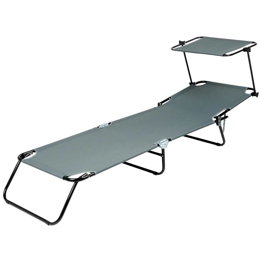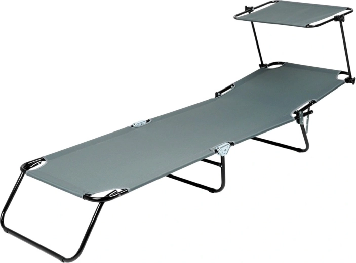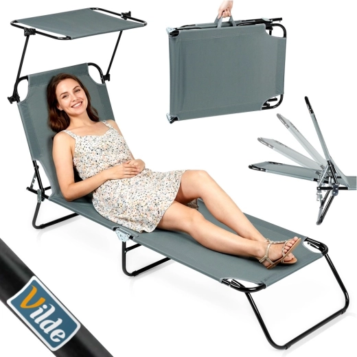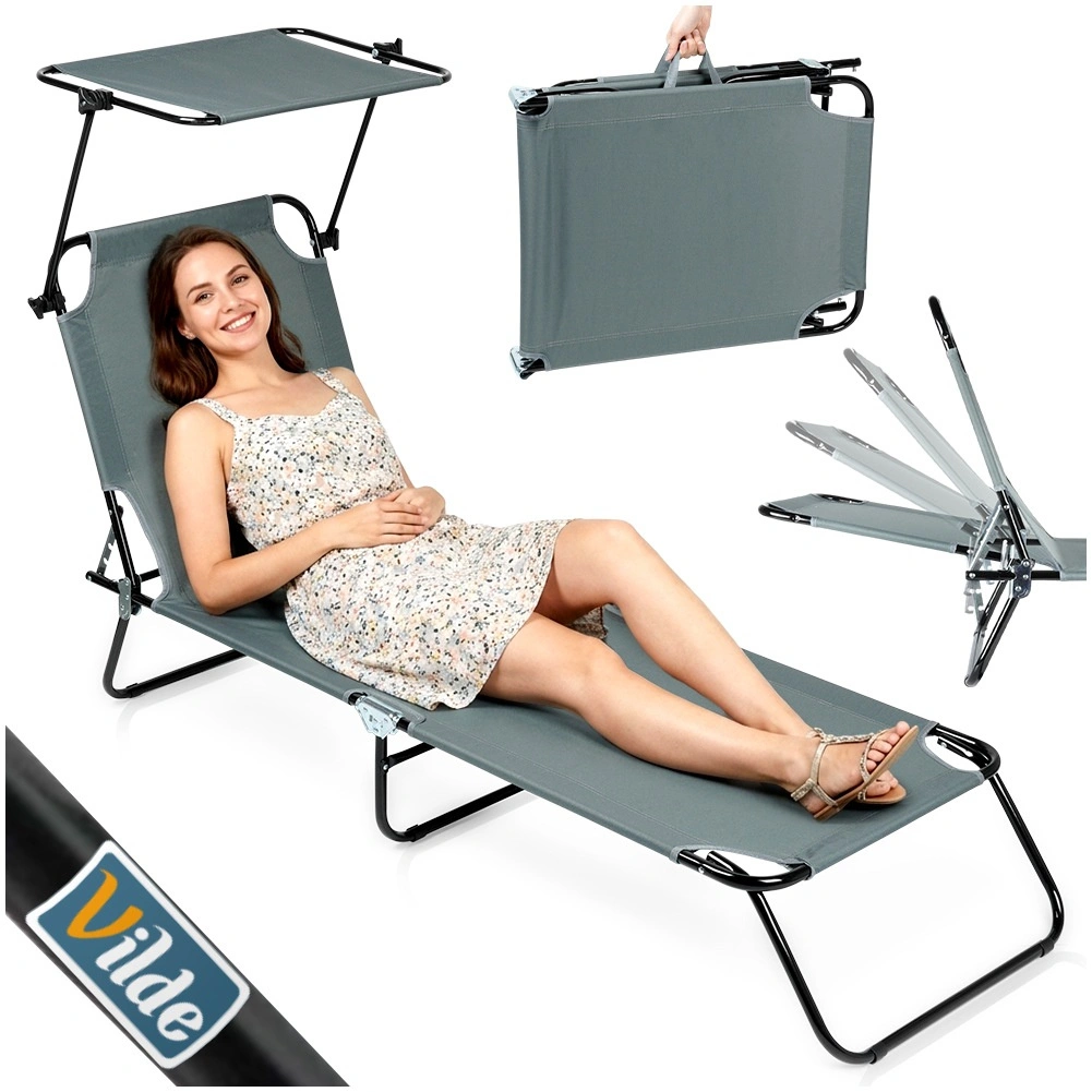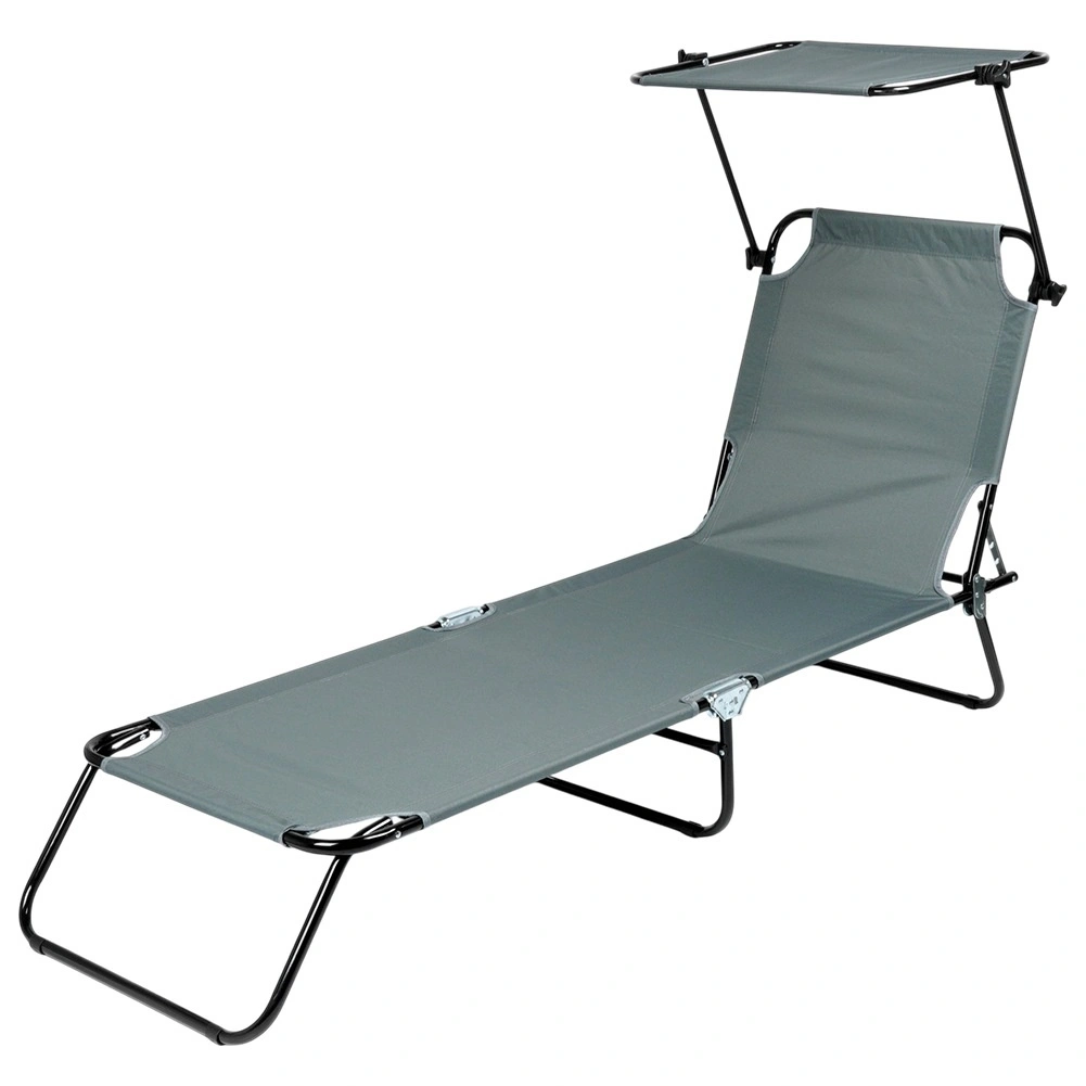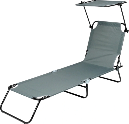 Praktické a pohodlné lehátko pro relax na zahradě, terase i u vody. Široké sedací lůžko 55 cm a délka 197 cm v poloze na plocho zaručí komfort při opalování i čtení. Nastavitelná stříška chrání hlavu a obličej před sluncem, zatímco stabilní kovový rám v černé barvě a odolná polyesterová textilie ve stylové šedé zajistí dlouhou životnost.