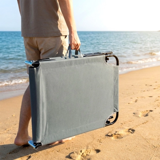 Lehátko složíte do kompaktních rozměrů 72 × 55 × 16 cm. Díky dvěma úchopům ho pohodlně odnesete na pláž, kemp či balkon.