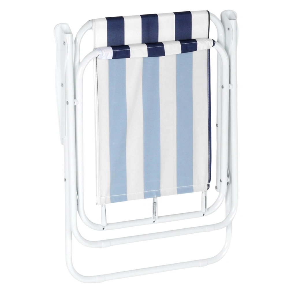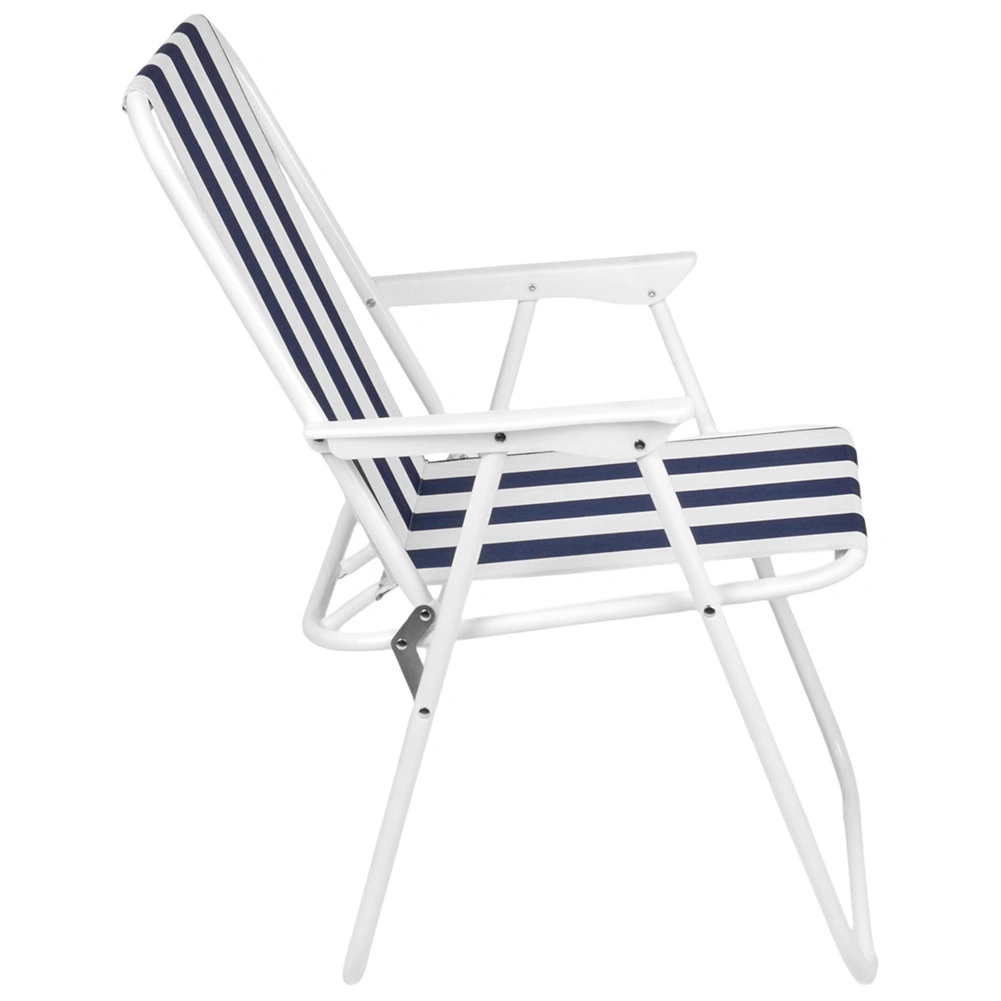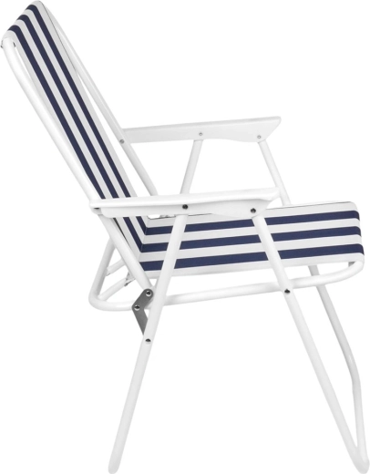 Bílý kovový rám a pevná polyesterová látka v námořnických pruzích zaručují stabilitu a dlouhou životnost při nosnosti až 120 kg.