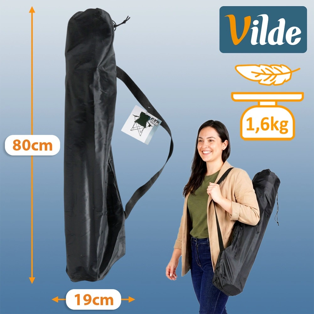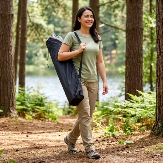 Po složení má židle kompaktní rozměry a uložíte ji do pouzdra s ramenním popruhem pro pohodlné přenášení. Díky odolnosti proti slunci, vlhkosti a proměnlivému počasí je skvělou volbou pro kempování, rybaření, pláž, festivaly i zahradu.