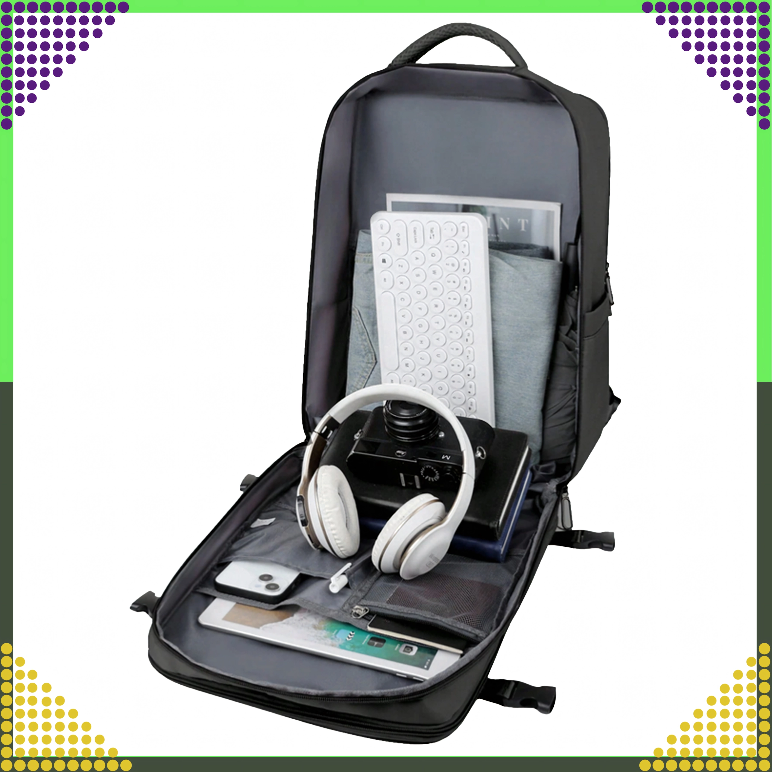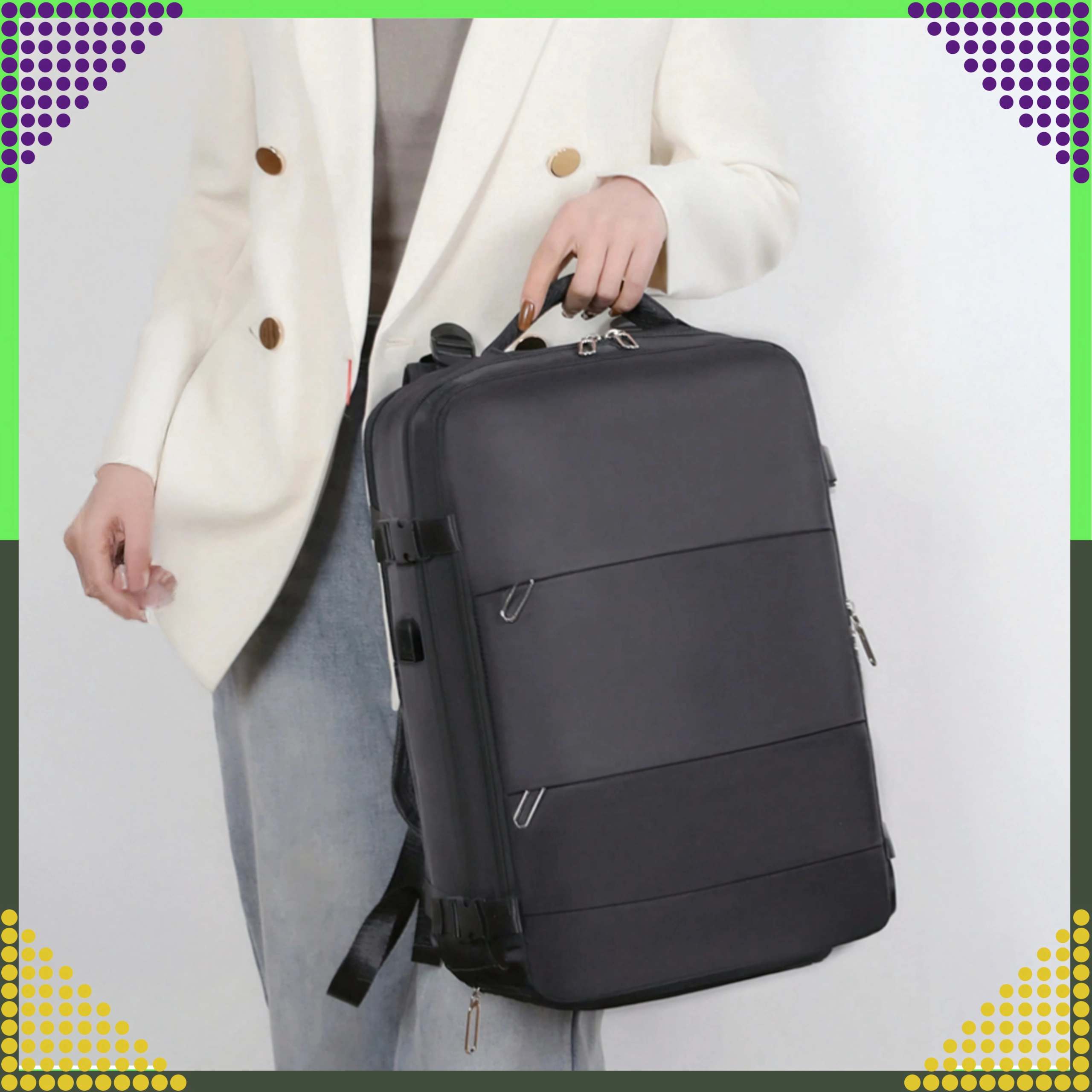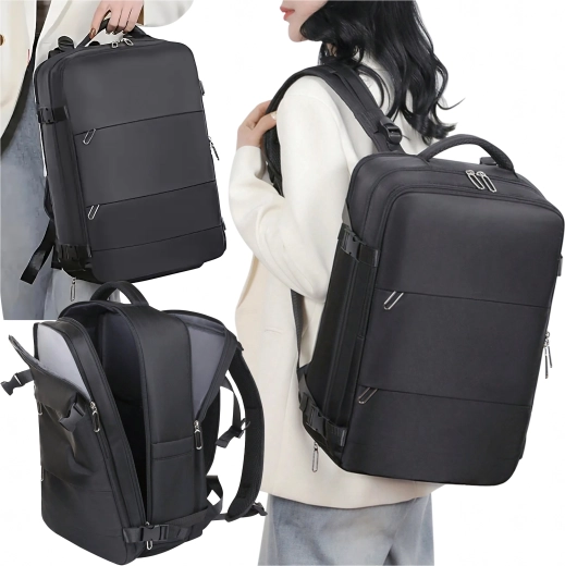 Více zipových kapes, kompresní popruhy a možnost nasazení na madlo kufru. Čistý vzhled, který se hodí k business i casual stylu.