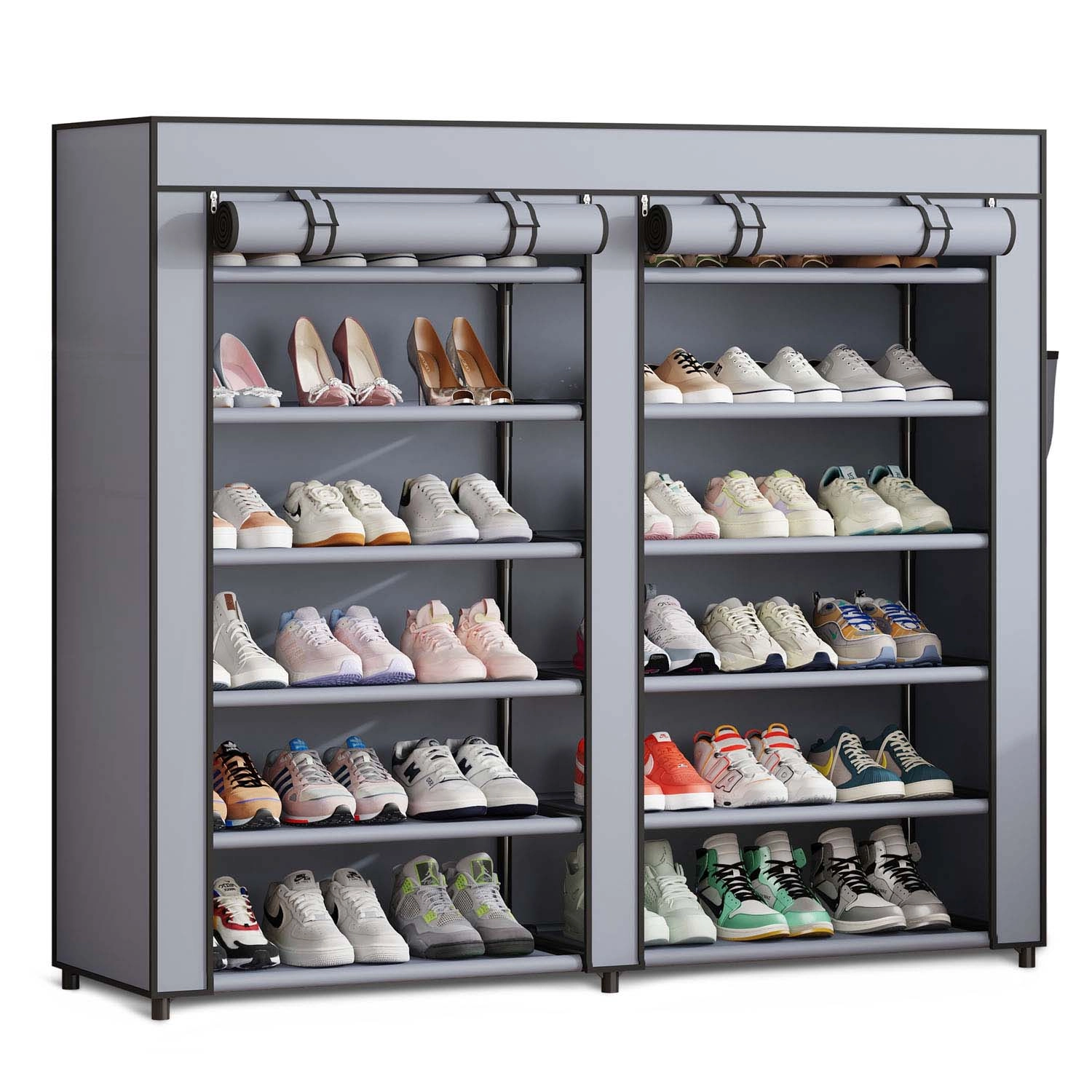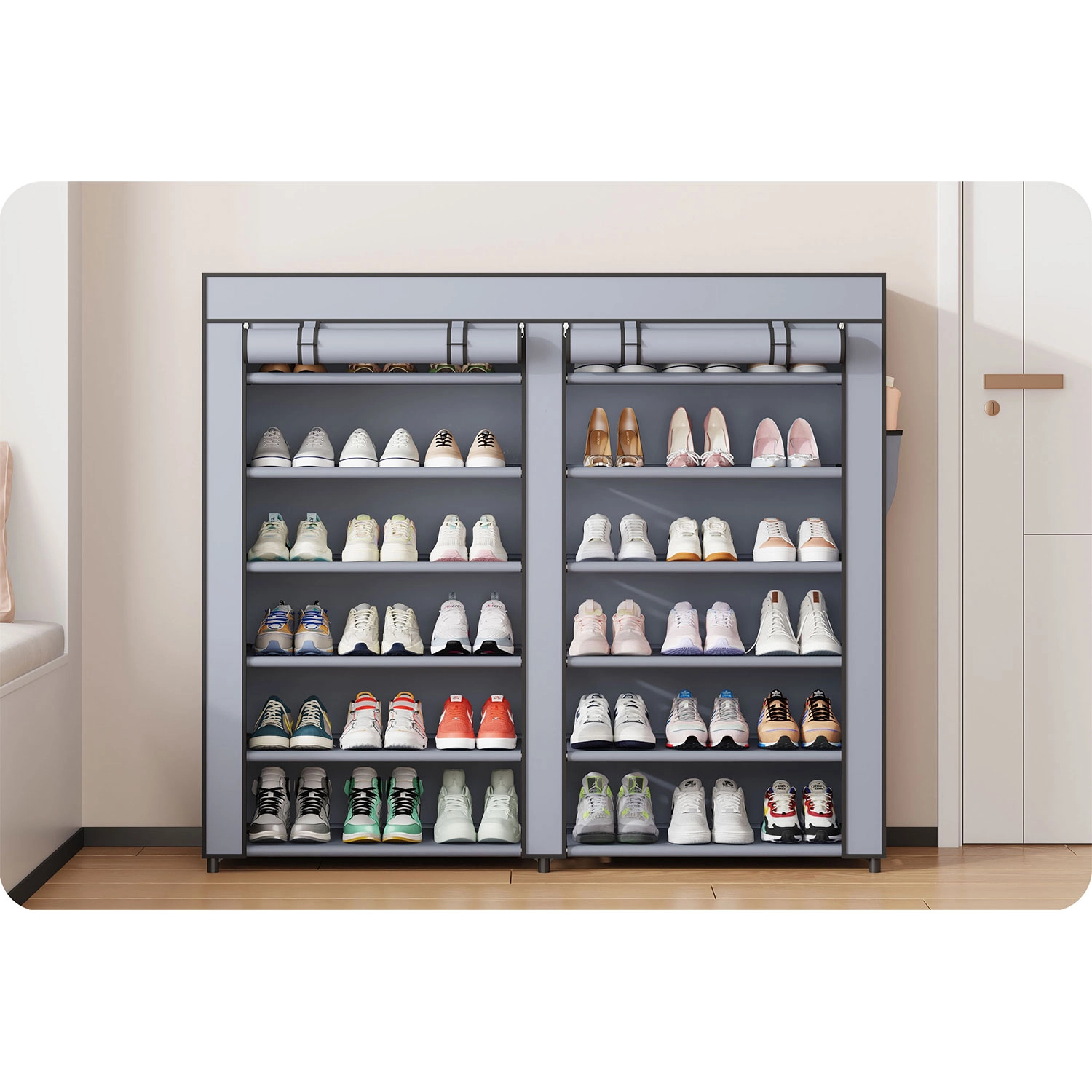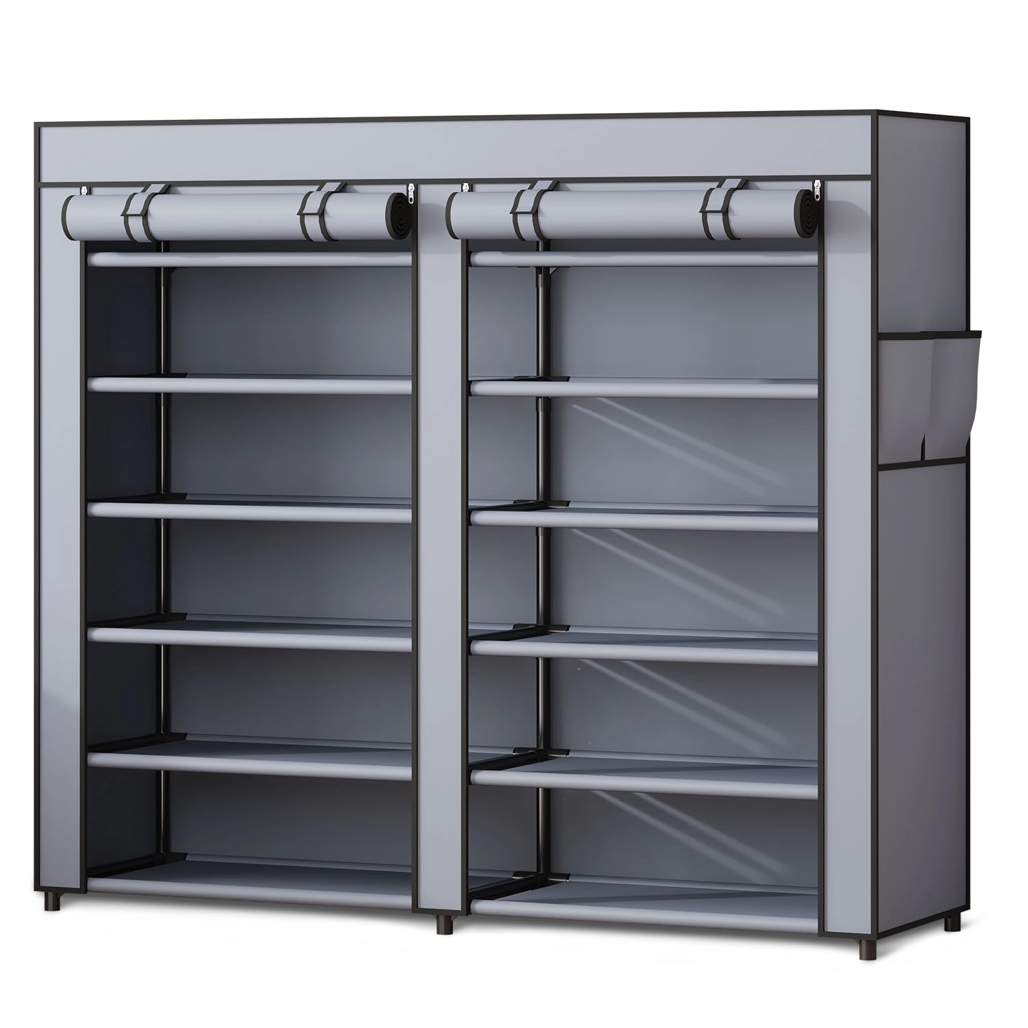 Praktická textilní skříň na boty Massido v elegantní grafitové barvě nabízí až 12 pevných polic, stabilní ocelovou konstrukci a zapínání na zip pro čistý a přehledný vstup. Díky voděodolnému potahu a snadné, intuitivní montáži je ideální do předsíně, šatny i menších bytů.