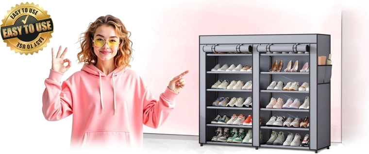 Praktické rozvržení polic poskytuje dostatek prostoru pro každodenní obuv i sezónní páry. Boční kapsa je ideální pro drobnosti, jako jsou impregnace, lžíce na boty nebo kartáčky. Montáž je velmi jednoduchá a nevyžaduje speciální nářadí.