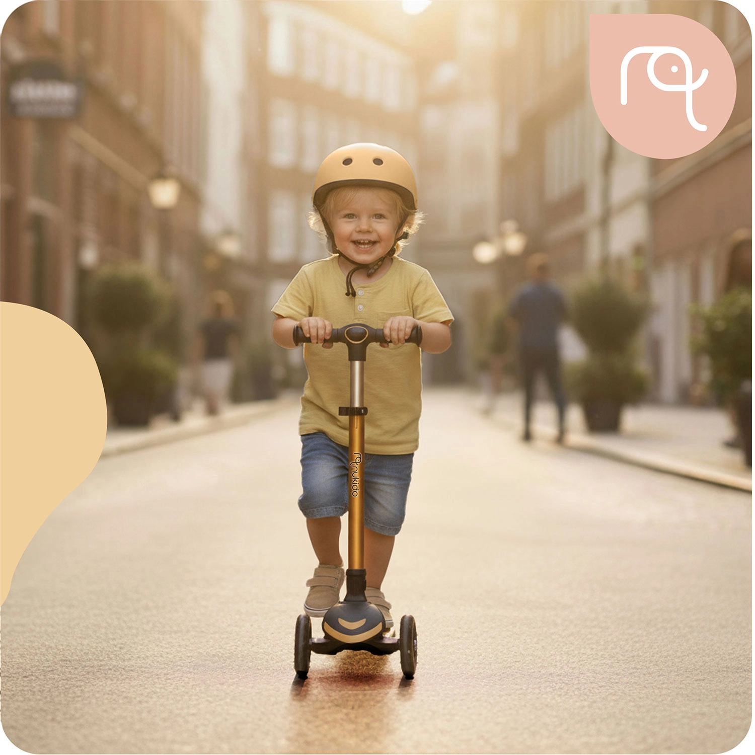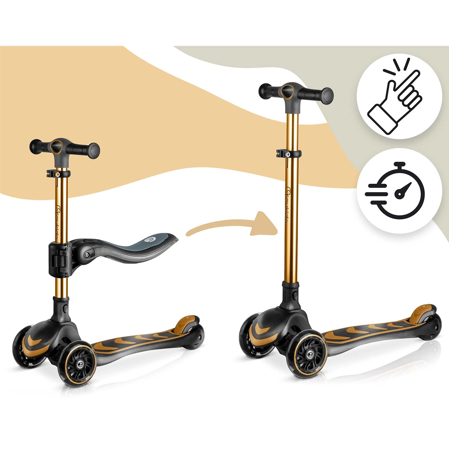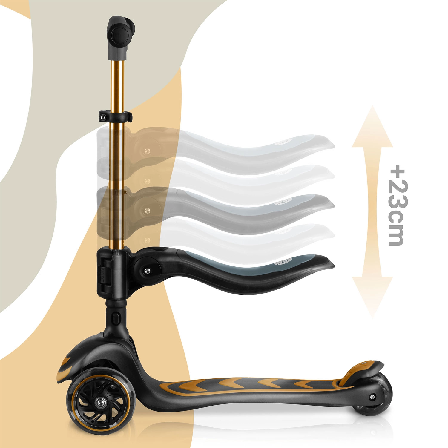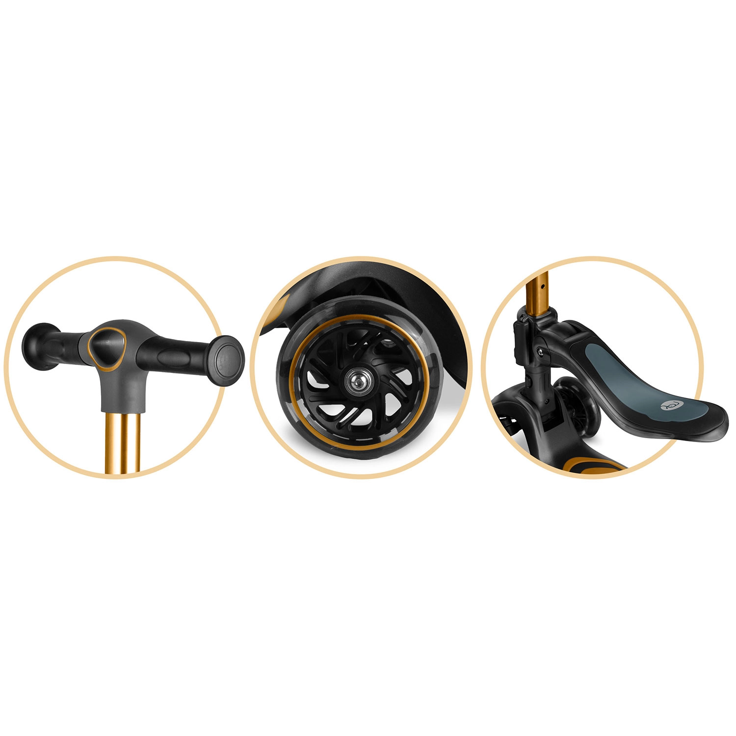 Tříkolová balanční koloběžka pro děti se sedátkem Nukido Flippo – zlatá