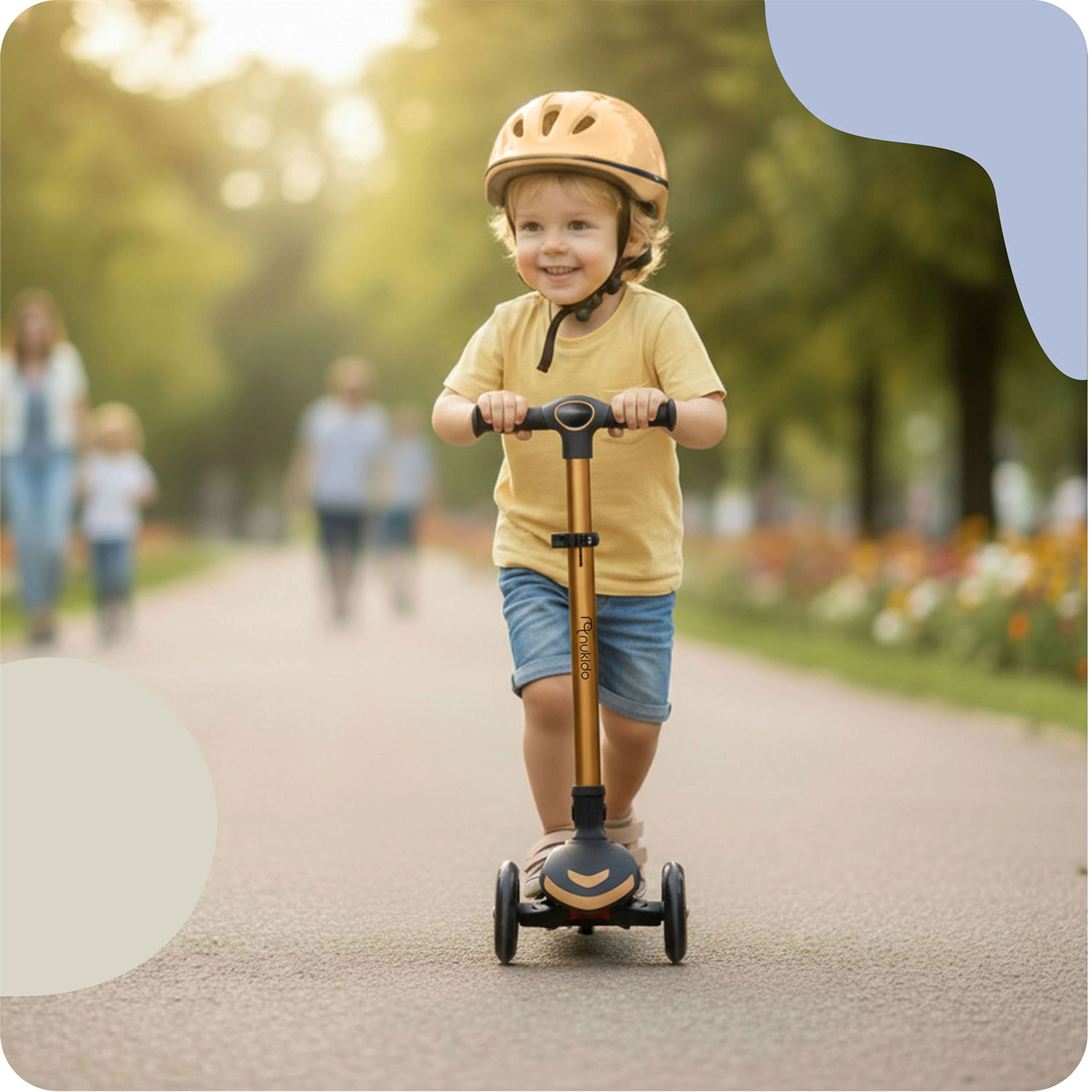 Tříkolová balanční koloběžka se sedátkem NUKIDO Flippo nabízí stabilní a zábavnou jízdu pro malé jezdce. Díky lean-to-steer řízení dítě intuitivně zatáčí náklonem těla, zatímco široký protiskluzový podest a zadní nožní brzda zvyšují bezpečnost. LED kola svítí během jízdy bez baterií a nastavitelná výška T-bar řídítek i odnímatelné sedátko zajistí dlouhou životnost produktu. Koloběžka splňuje evropské bezpečnostní normy EN71 a unese až 50 kg.