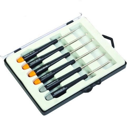 V balení najdete kombinaci plochých i křížových PH šroubováků v nejpoužívanějších velikostech, uložených v kompaktním plastovém organizéru. Sada je vhodná pro servis mobilů, brýlí, hodinek, jemné mechaniky a elektroniky.