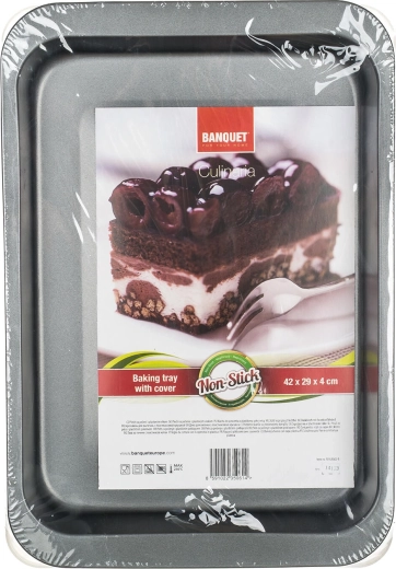 Praktický plech na pečení s rozměry 42 × 29 × 4 cm z odolné uhlíkové oceli nabízí kvalitní nepřilnavý povrch pro snadné pečení bez připalování. Součástí je plastové víko pro bezpečné přenášení a uchovávání pokrmů. Nepřilnavý povrch XYNFLON na bázi PTFE zaručuje snadnou údržbu a dlouhou životnost.