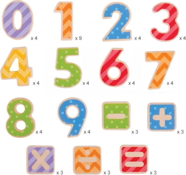 V této sadě naleznete celkem 56 dílků, které zahrnují číslice 0 až 9 a různé matematické operátory. Magnetická čísla jsou perfektní pomůckou pro tabule, což umožňuje dětem snadno tvořit příklady a příběhy z čísel. Pomáhají rozvíjet obratnost a koncentraci a jejich použití je bezpečné.