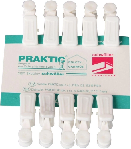 Univerzální bílá barva ladí s většinou garnýží a interiérů, zatímco odolný plast zajišťuje dlouhou životnost při každodenním používání. Balení 10 ks je ideální pro menší okna nebo doplnění stávající sady.