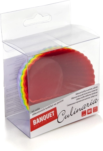 Praktické silikonové košíčky CULINARIA o rozměrech 7,5 × 3 cm v balení 6 kusů pro snadné a opakované pečení muffinů a cupcakeů. Díky kvalitnímu silikonu jsou odolné vůči teplotám až 230 °C, nelepí a hotové pečivo lze snadno vyklopit. Barevný mix (žlutá, oranžová, růžová, fialová, modrá, zelená) dodá pečení hravý styl a údržba v myčce nádobí šetří čas.