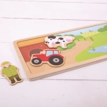 Magnetické puzzle farma Bigjigs Toys je ideální volbou pro první tvořivé hraní. Od traktoru po pejska – různé dílky dovolují pokaždé vytvořit jinou scénu, což dává dětem spoustu prostoru pro fantazii. Pevné dřevěné magnety snadno drží na magnetické základní desce i na lednici.