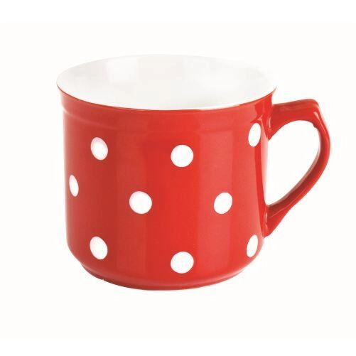 Stylový retro hrnek o objemu 660 ml v červené barvě s bílými puntíky potěší malé i velké. Je ideální na každodenní použití – na teplé kakao, čaj i kávu. Snadná údržba díky možnosti mytí v myčce a bezpečné použití v mikrovlnné troubě.