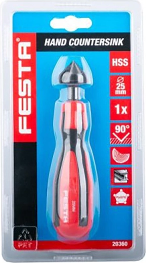 Vhodné pro srážení hran a lehké záhlubování otvorů v kovu i plastu s průměrem kužele 25 mm.
