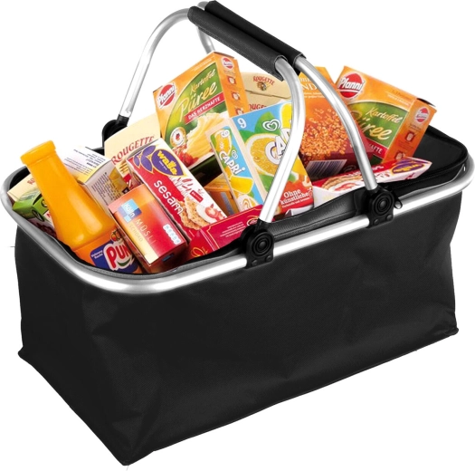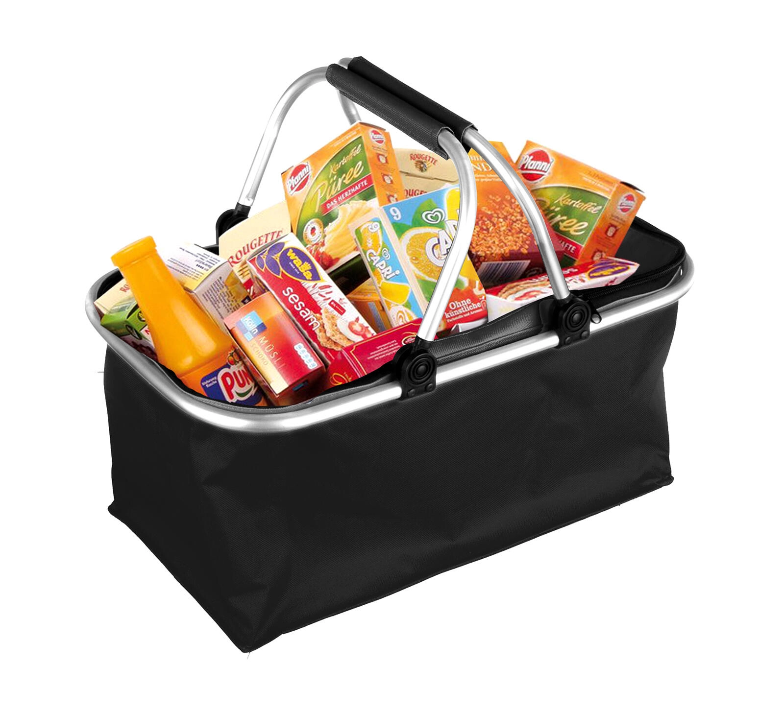 Skládací kempingový košík 48 × 24 × 28 cm, hliník a polyester, černý