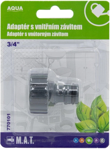 Tento adaptér s vnitřním závitem 3/4 od značky AQUA je ideální pro připojení hadic k vodovodním kohoutkům, rozvodům a zavlažovacím systémům. Díky standardizovanému závitu 3/4 je kompatibilní s většinou běžných zahradních komponentů a umožňuje rychlou montáž bez složitých úprav.