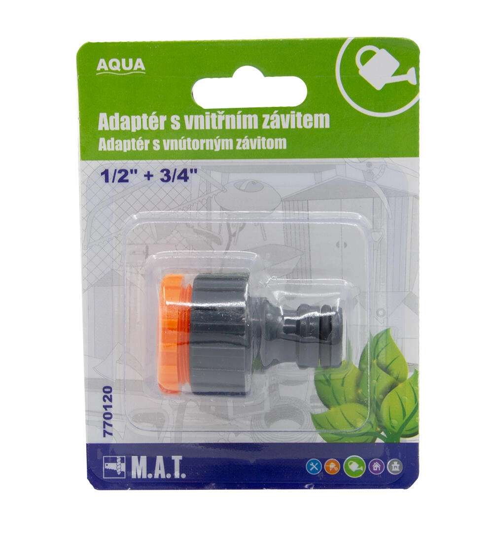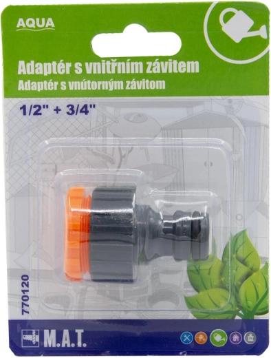 Adaptér s vnitřním závitem AQUA je praktické řešení pro propojení hadic s kohoutky či rozvody vody. Díky dvěma běžným velikostem závitů 1/2" a 3/4" pokryje většinu domácích i zahradních aplikací a usnadní instalaci zavlažovacích systémů.