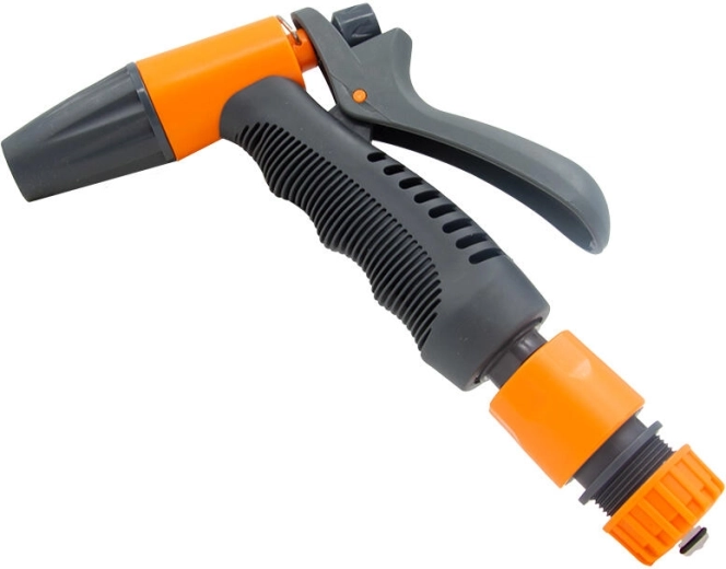 Praktická sada pro zahradní hadice obsahuje nastavitelnou postřikovací pistoli a rychlospojku STOP 1/2" pro okamžité zastavení průtoku vody při odpojení. Ideální pro pohodlné zalévání, oplach a údržbu zahrady s jednoduchým ovládáním a spolehlivým plastovým provedením.