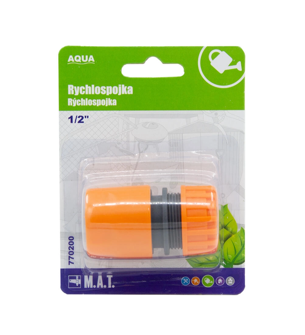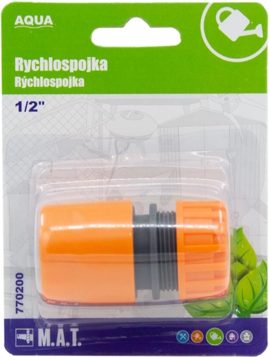 Univerzální rychlospojka 1/2" AQUA pro snadné a rychlé připojení zahradních hadic bez použití nářadí. Spolehlivé těsnění, odolné plastové provedení a rychlá instalace pro pohodlné zalévání a péči o zahradu.