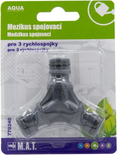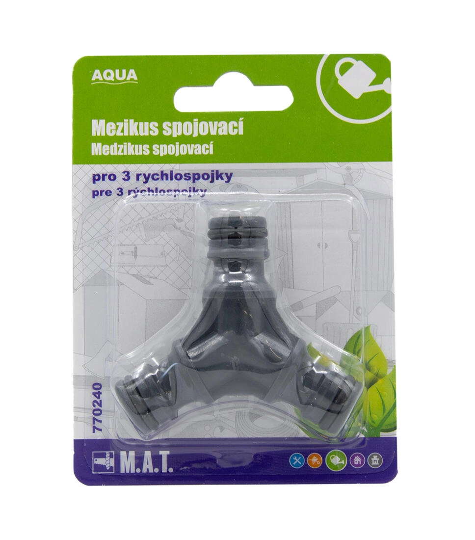 Usnadněte si práci na zahradě s univerzálním mezikusem pro tři rychlospojky 1/2" AQUA. Tento praktický prvek umožňuje rychlé propojení hadic a příslušenství bez složité montáže. Díky lehké a odolné plastové konstrukci je ideální pro každodenní použití při zalévání, mytí či zavlažování.