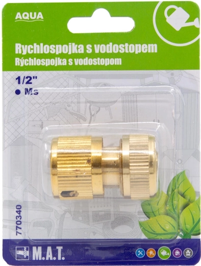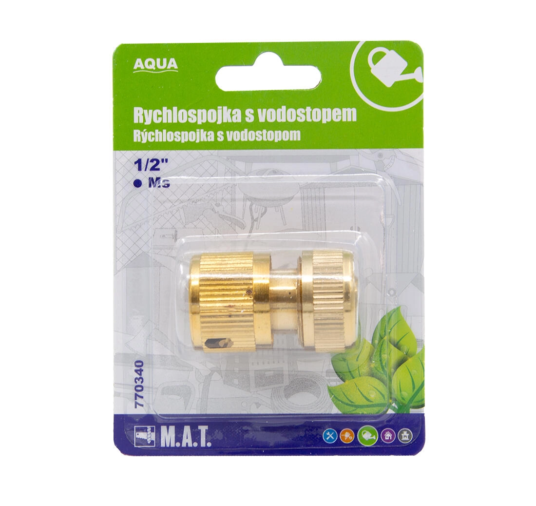Odolná mosazná rychlospojka 1/2 s vodostopem pro snadné a těsné připojení zahradních hadic. Vodostop automaticky zastaví průtok při odpojení příslušenství, mosazné provedení zajišťuje dlouhou životnost a spolehlivost i při častém používání.