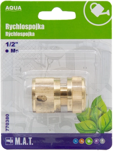 Rychlospojka AQUA se závitem 1/2" je navržena pro snadné a bezpečné propojení zahradních hadic a příslušenství. Odolná mosazná konstrukce zaručuje dlouhou životnost, spolehlivé těsnění a odolnost proti korozi, takže je skvělou volbou pro domácí i profesionální zavlažovací systémy.