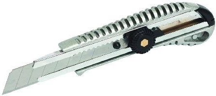 Praktický odlamovací nůž FESTA s šířkou čepele 18 mm je ideální pro přesné a bezpečné řezání v dílně i na stavbě. Má kovové tělo s protiskluznými drážkami, ocelovou vodicí lištu a šroubkovou aretaci pro pevné zajištění čepele.