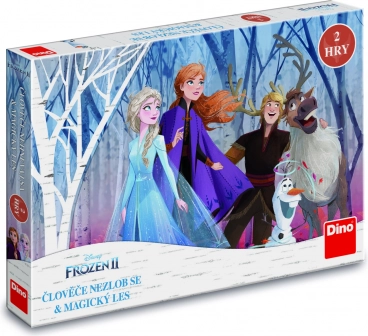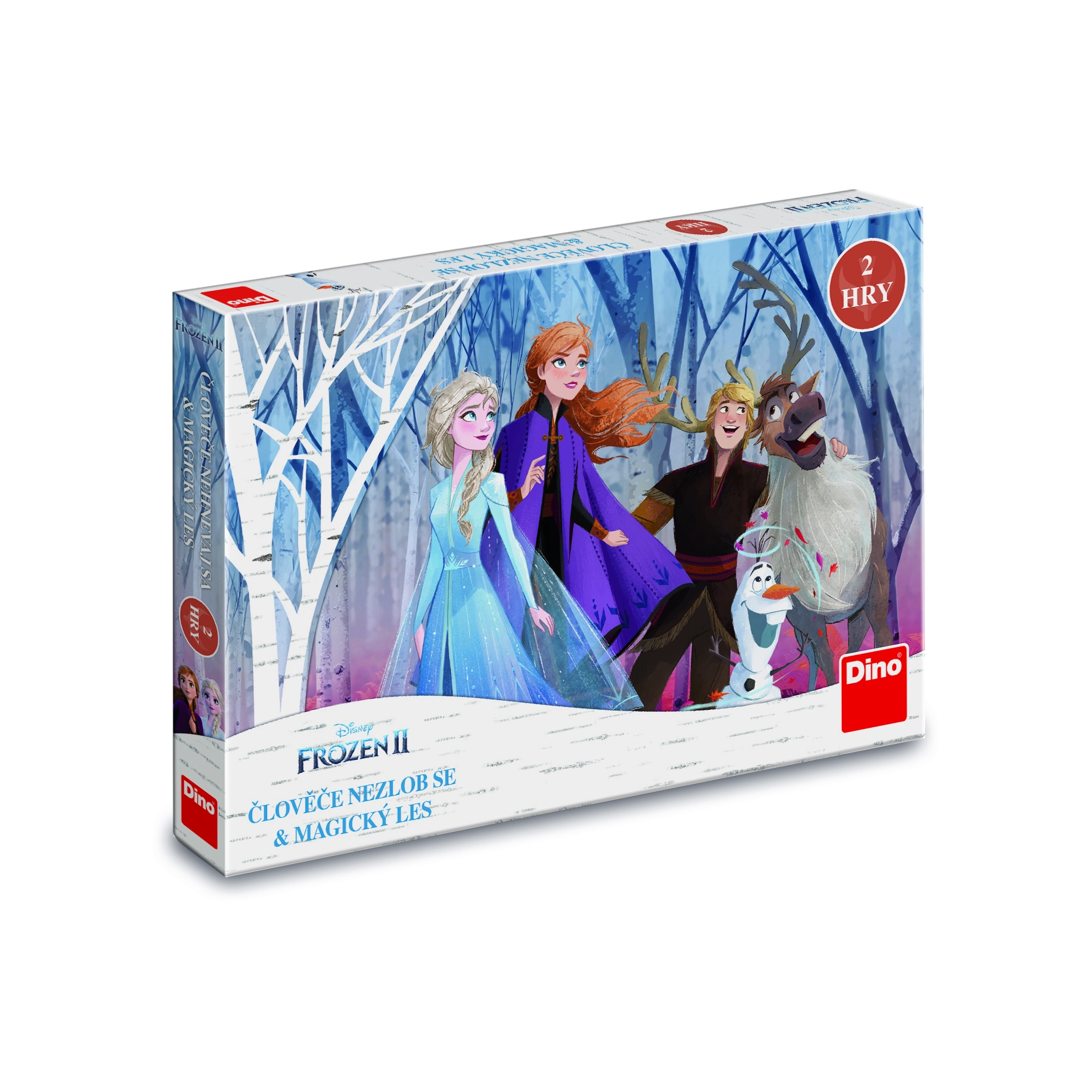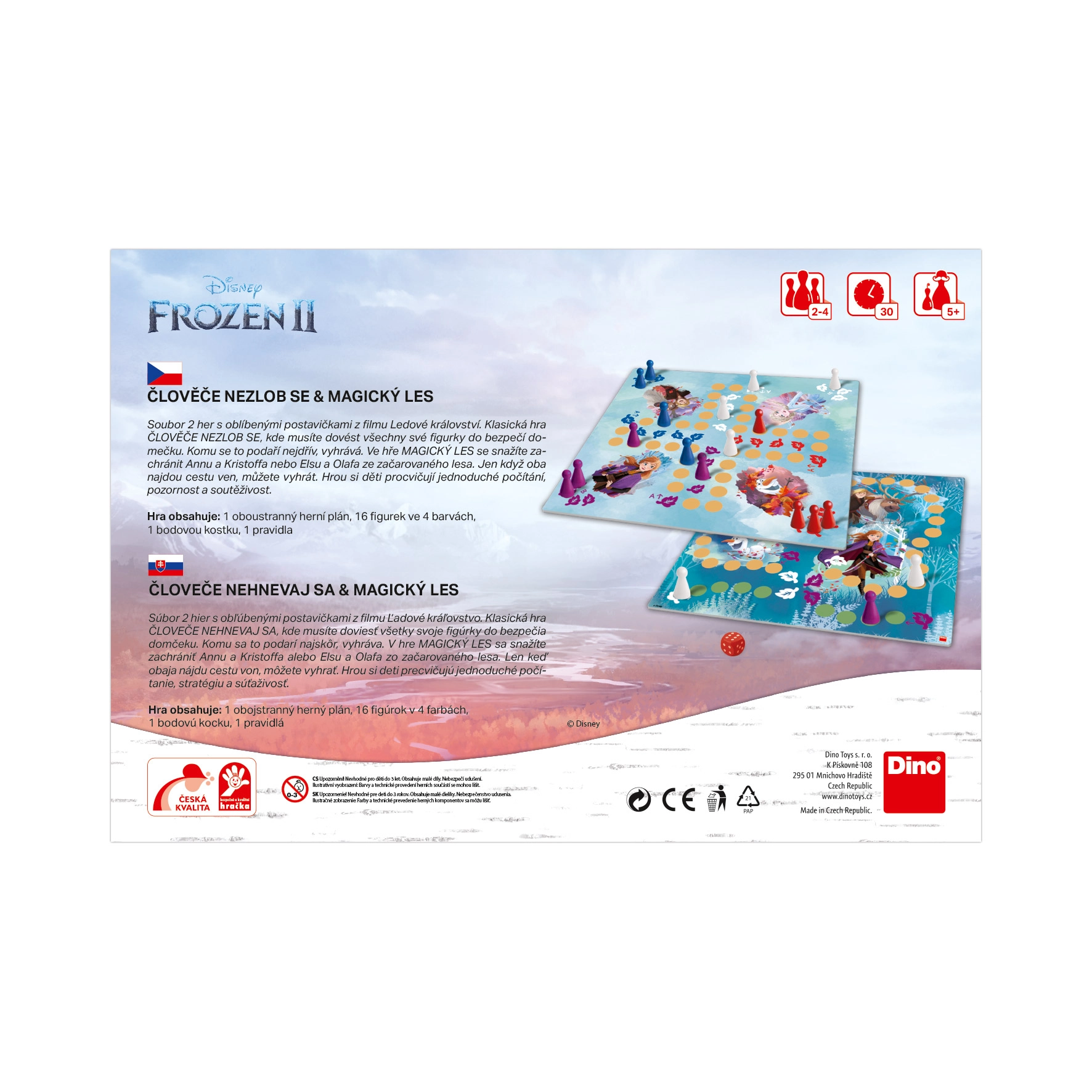 Dino FROZEN: Člověče, nezlob se a Magický les. Dvě hry v jednom, 2–4 hráči, od 5 let. Procvičuje počítání a logiku. Certifikace Bezpečná a kvalitní hračka.