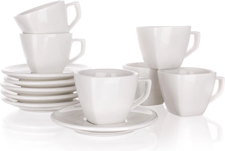 Objevte nadčasový set šálku a podšálku ALBA s objemem 250 ml, který spojuje čisté linie, bílou glazuru a profesionální kvalitu. Hranaté prvky dodávají moderní vzhled a zároveň zajišťují stabilní a pohodlné držení. Ideální pro podávání kávy, čaje i horké čokolády.