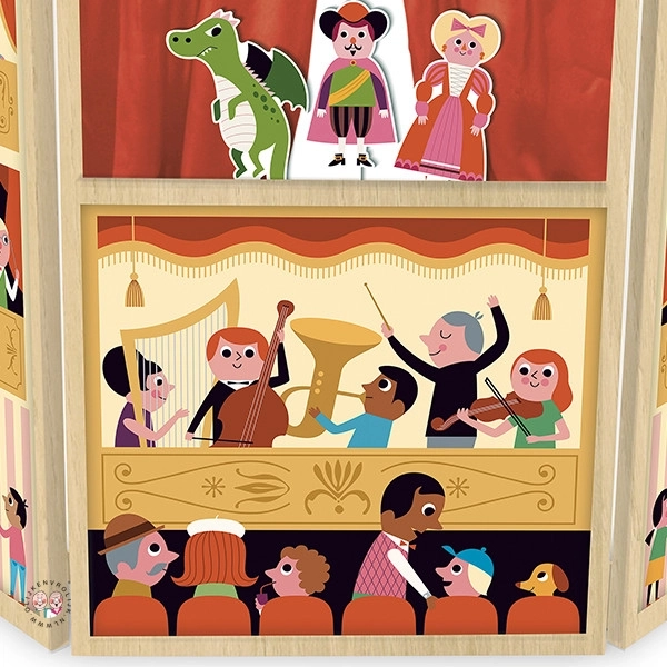 Velkolepé trojstěnné dřevěné divadlo s oknem a oponou nadchne malé vypravěče. Obsahuje 3 loutky, je ilustrované umělkyní Ingelou P. Arrhenius a rozvíjí představivost i komunikační dovednosti. Vhodné od 3 let, rozměry 115 × 110 × 5 cm.