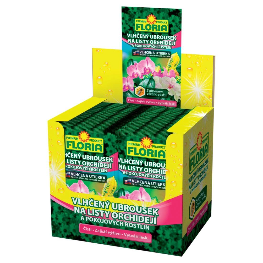 Praktický jednorázový ubrousek FLORIA pro rychlou a šetrnou péči o listy orchidejí a pokojových rostlin. Odstraňuje vodní a vápenné skvrny, vytváří antistatický povlak proti usazování prachu a díky obsahu včelího vosku dodává listům přirozený lesk. Zároveň lehce vyživuje a působí jako prevence proti škůdcům.