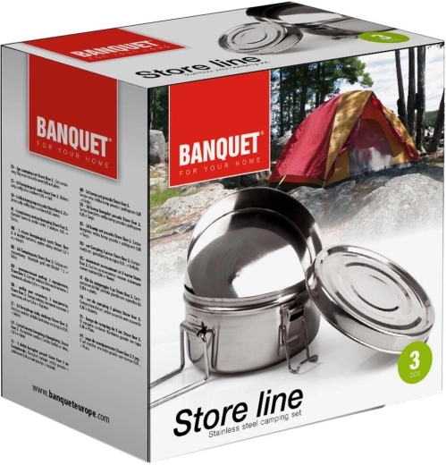 Objevte spolehlivého parťáka na cesty. Sada STORE LINE 2 obsahuje ešus se sklopným držadlem, víko a talíř o průměru 14 cm. Kvalitní nerezové provedení zajišťuje dlouhou životnost a hygienickou přípravu jídla v terénu.