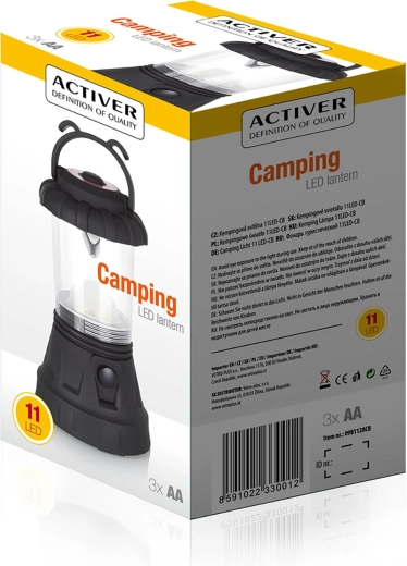 Kompaktní a lehká kempingová LED lucerna s 11 diodami pro spolehlivé 360° osvětlení na cestách, při kempování i na zahradě. Nabízí vysokou svítivost, nízkou spotřebu a praktické držadlo pro přenášení nebo zavěšení. Napájení zajišťují 3× AA baterie (nejsou součástí balení).