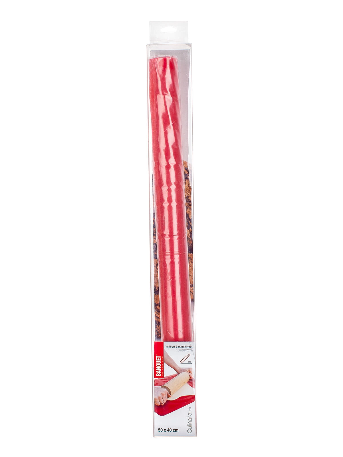 Silikonový vál CULINARIA Red je nepostradatelný pomocník pro domácí i profesionální pečení. Protiskluzový povrch s integrovaným měřítkem usnadňuje tvarování a dělení těsta, zatímco flexibilní materiál zajišťuje snadnou manipulaci a skladování.