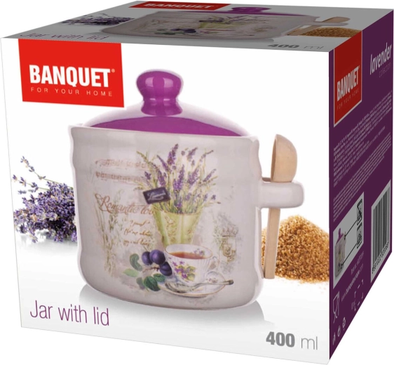 Stylová keramická dóza na potraviny s objemem 400 ml v designu LAVENDER je ideální pro cukr, sůl či bylinky. Díky těsnému víčku a přiložené dřevěné lžičce nabízí praktické a estetické ukládání. Keramické provedení, praktická dřevěná lžička a jemný levandulový dekor doladí vaši kuchyni do posledního detailu.