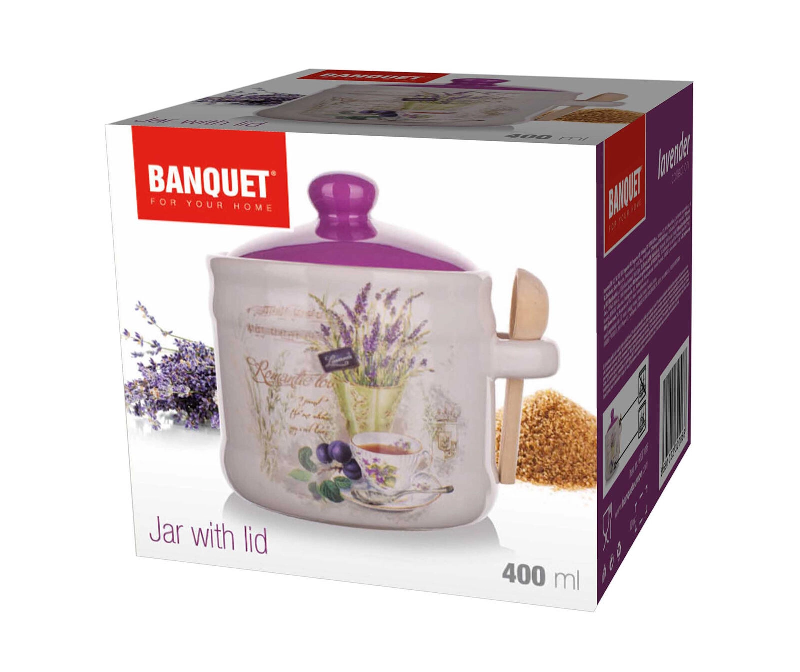 Tato elegantní dóza LAVENDER v kombinaci bílé a fialové glazury s dekorem levandule přinese do vaší kuchyně kouzlo Provence. Keramický materiál pomáhá udržet obsah v suchu a chráněný před světlem, zatímco víčko a dřevěná lžička zajišťují pohodlné dávkování.