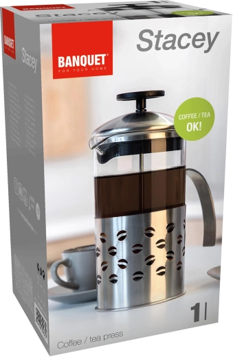 French press STACEY je stylová konvice na kávu a čaj pro každodenní rituály. Skleněná nádoba je zasazena v pevném nerezovém plášti a doplněna přesným pístovým filtrem z nerezové oceli, který účinně oddělí lógr či lístky čaje. Objem 1 litr pohodlně postačí pro přípravu více šálků najednou.