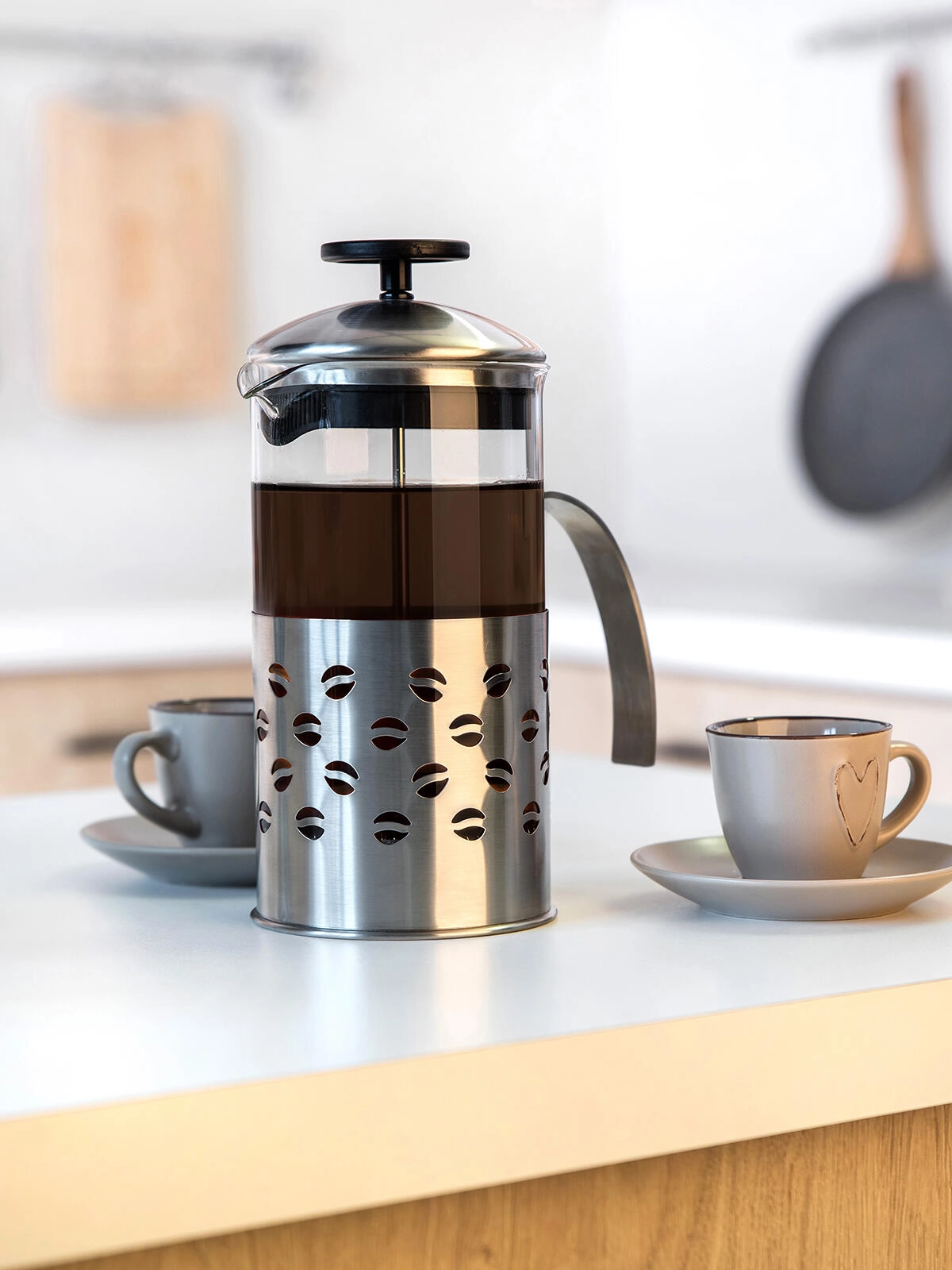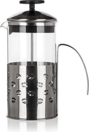 Stabilní kovový plášť s pohodlným madlem usnadňuje nalévání a chrání skleněnou nádobu. Vhodné pro více šálků najednou.