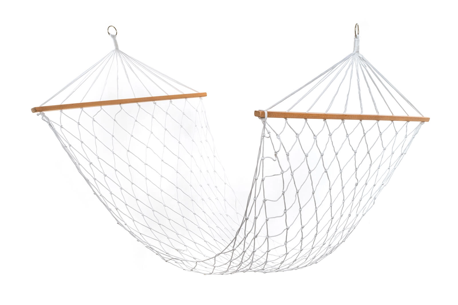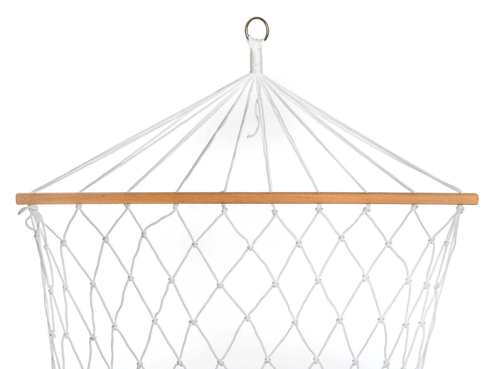 Toto bílé závěsné síťové lehátko přináší dokonalé spojení pohodlí a jednoduchého designu. Dřevěné rozpěrné tyče udržují lehátko krásně rozevřené a zajišťují stabilní nástup i ležení. Prodyšná síťovina se přizpůsobí tělu a nabízí příjemné ochlazení i v teplých dnech.