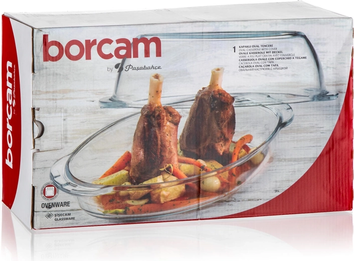 Univerzální skleněný oválný pekáč s víkem o celkovém objemu 4,6 l je ideální pro pečení masa, zapékaných pokrmů i dezertů. Je vyroben z borosilikátového skla, které je vysoce odolné vůči teplotám od -50 do 500 °C, hygienické a snadno se udržuje – lze jej mýt v myčce. Díky víku získáte další nádobu a možnost zdravého pečení bez zbytečného tuku.
