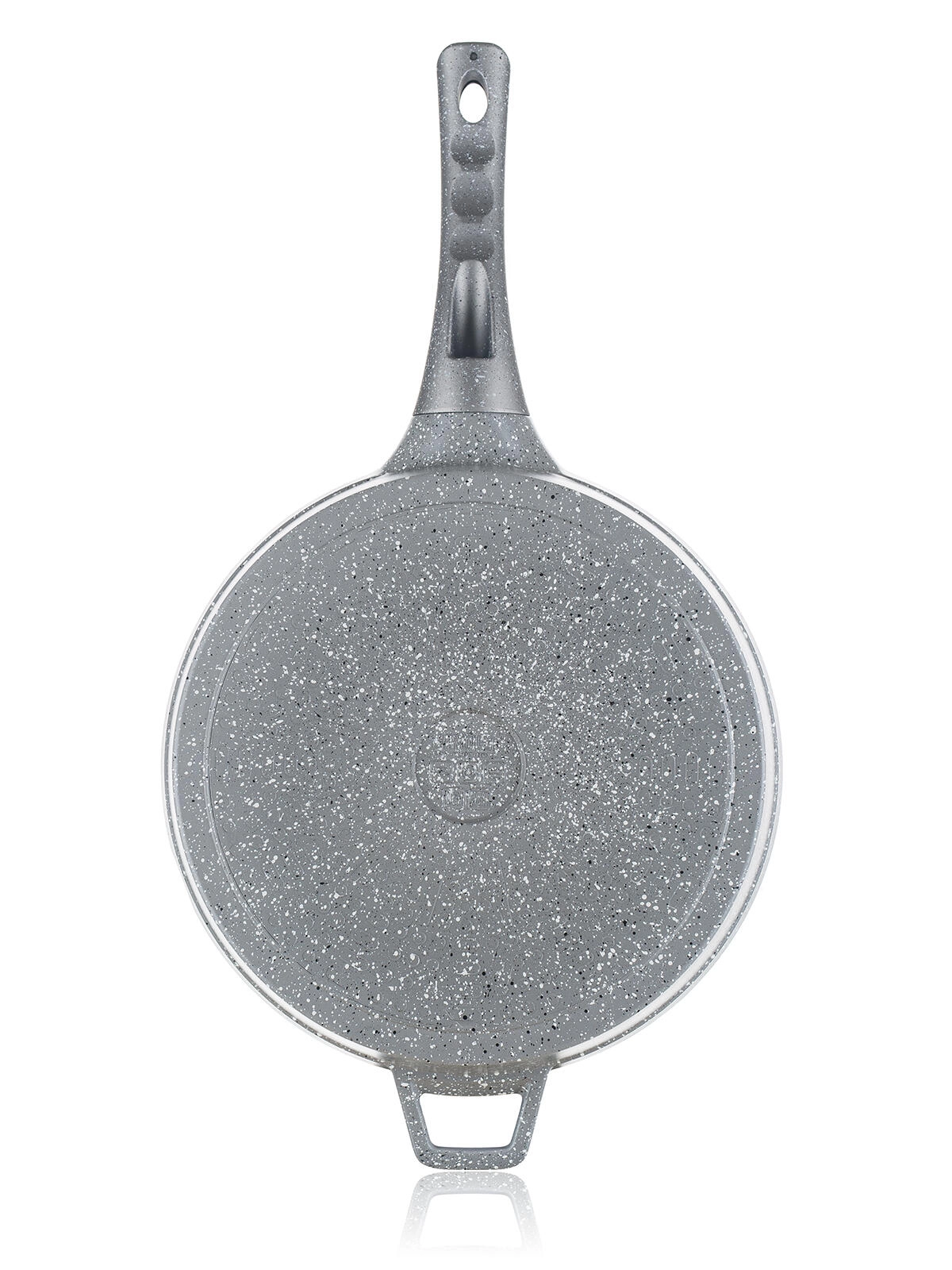 Hliníkové tělo zajišťuje efektivní rozvod tepla, zatímco žáruvzdorný granitový nástřik dna zvyšuje odolnost pánve.