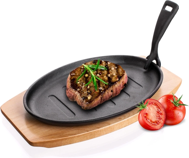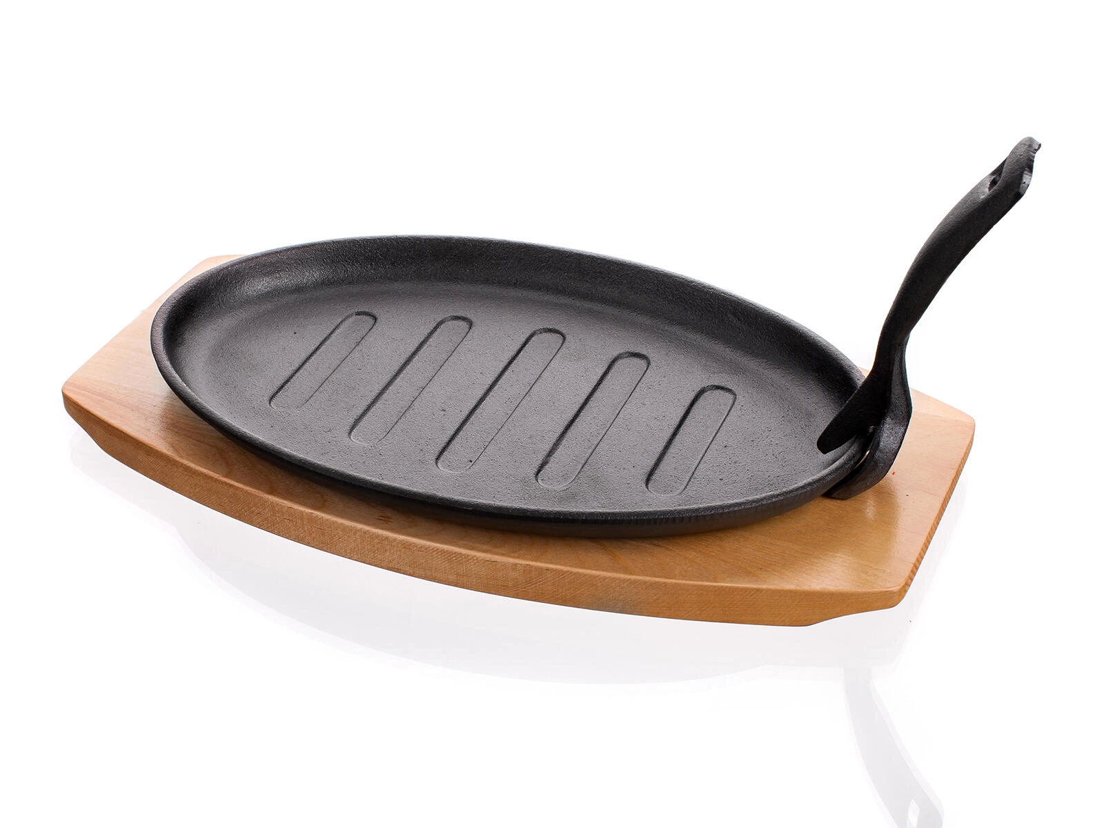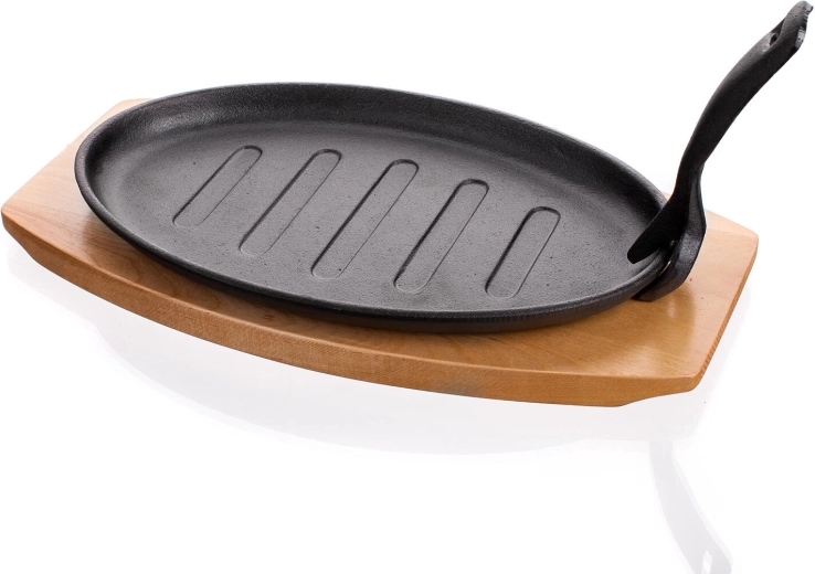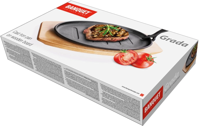 Univerzální litinová pánev s rozměry 27 × 17,5 cm a praktickým dřevěným prkénkem je ideální pro zapékání v troubě, přímé servírování i udržení teploty pokrmů. Robustní litina zajišťuje vynikající akumulaci a rovnoměrný rozvod tepla, odnímatelné držadlo usnadňuje bezpečnou manipulaci a dřevěné prkénko slouží jako stylová a bezpečná podložka pod horkou pánev.