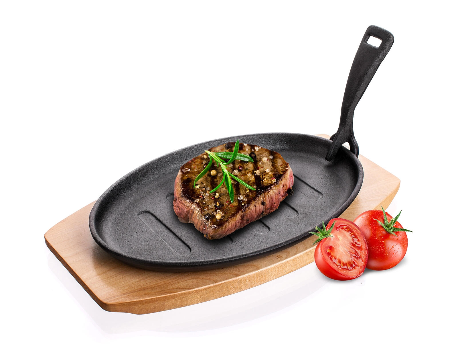 Součástí je dřevěné prkénko, které slouží jako podložka pod horkou pánev – chrání povrchy a zároveň dodá servírování atraktivní vzhled. Díky kompaktním rozměrům je pánev perfektní pro zapékání masa, zeleniny, těstovin či dezertů.