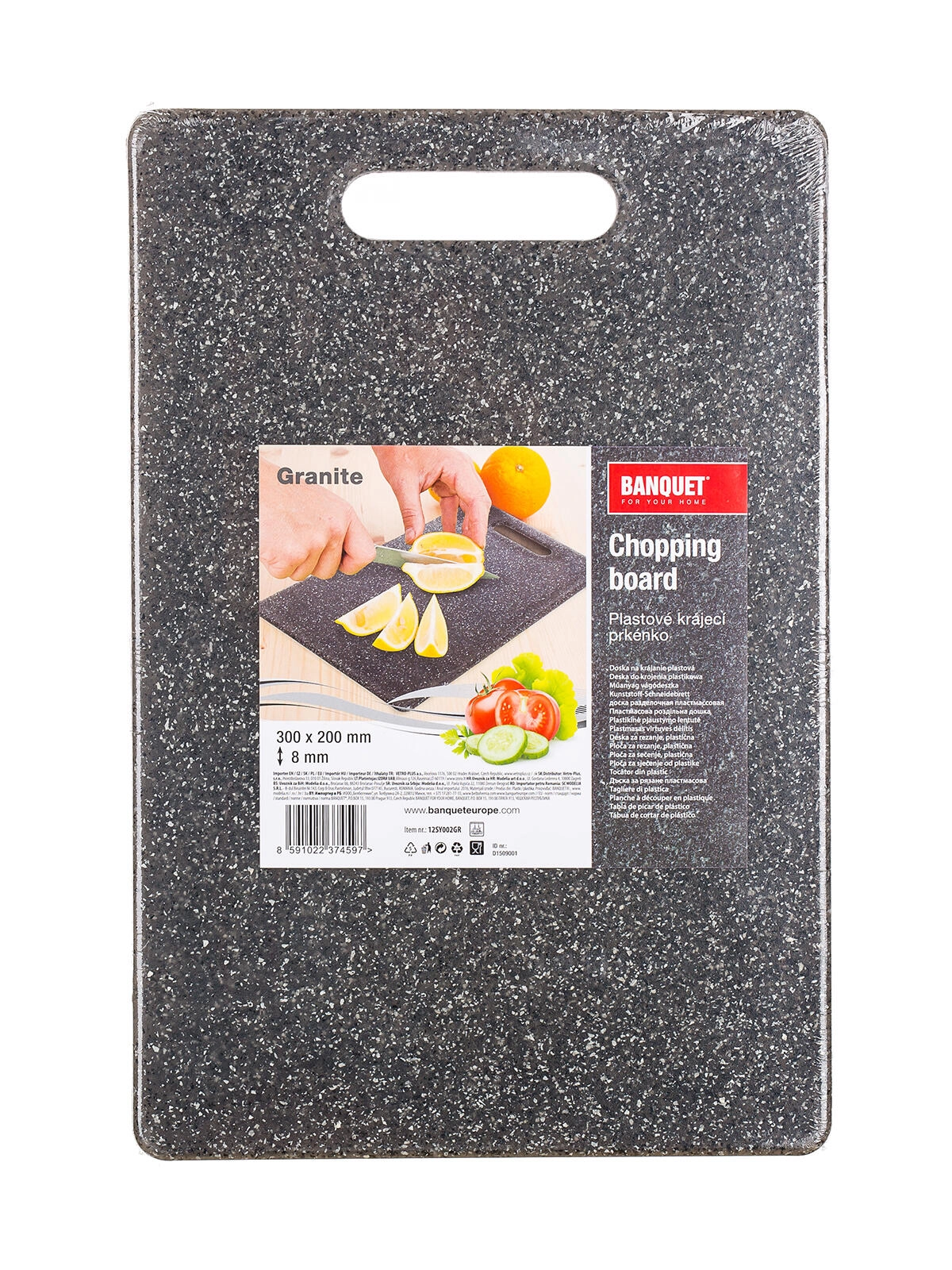 Užijte si pohodlné krájení na pevném a lehkém prkénku s moderním granitovým vzhledem. Díky praktickému otvoru lze prkénko snadno přenášet nebo zavěsit, tenký profil pak šetří místo při ukládání.