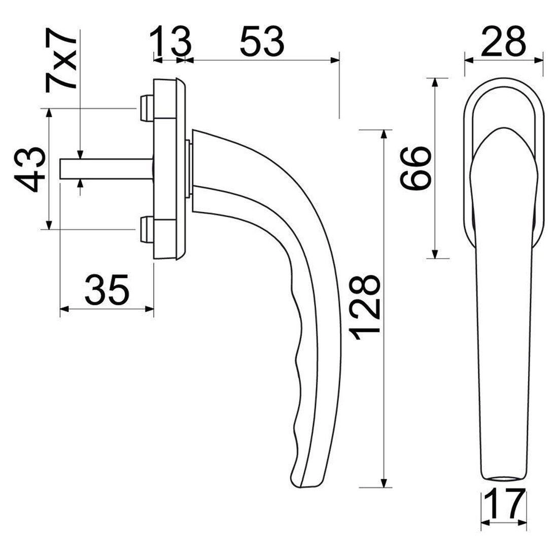 Ergonomicky tvarované madlo o délce 128 mm sedí do ruky a usnadňuje každodenní manipulaci s okny a dveřmi.
